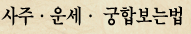 »çÁÖÀ¯¸íÇѰ÷ ¿î¸íÀÇ ÀÌÇØ »çÁÖÀ¯¸íÇѰ÷, ¿î¸íñé»çÁÖ »çÁÖÀ¯¸íÇѰ÷ ´Â ž ³â(Ò´), ¿ù(êÅ), ÀÏ(ìí), ½Ã(ãÁ) ·Î »ç¶÷ÀÇ ±æÈäÈ­º¹(ÑÎýÕü¡ÜØ) »çÁÖ¿î¼¼ ¸¦ Á¡Ä¡´Â°Í.