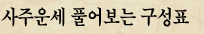 »ç¶÷ÀÇ »çÁÖ¿î¼¼ ±æÈäÈ­º¹À» ³â(Ò´), ¿ù(êÅ), ÀÏ(ìí), ½Ã(ãÁ)¸¦ ¹ÙÅÁÀ¸·Î ÇÏ¿© ¹Ì·¡¿¡ ´ëÇØ ÀÚ¼¼ÇÏ°Ô ¾Ë·ÁÁÖ´Â Çй®À̱⠶§¹®¿¡ »çÁÖ¿î¼¼ ¿¡¼­ °¡Àå ±âº»ÀûÀ¸·Î ±¸¼ºÇϰíÀÖ´Â ³â(Ò´), ¿ù(êÅ), ÀÏ(ìí), ½Ã(ãÁ)¾ß ¸»·Î »çÁÖ¿î¼¼ ±¸¼ºÇÏ°í ¶Ç »çÁÖ¸¦ º¸±â À§ÇÑ °¡Àå ±âº»ÀûÀÎ ±¸¼º¿ä¼ÒÀÎ °ÍÀÔ´Ï´Ù.